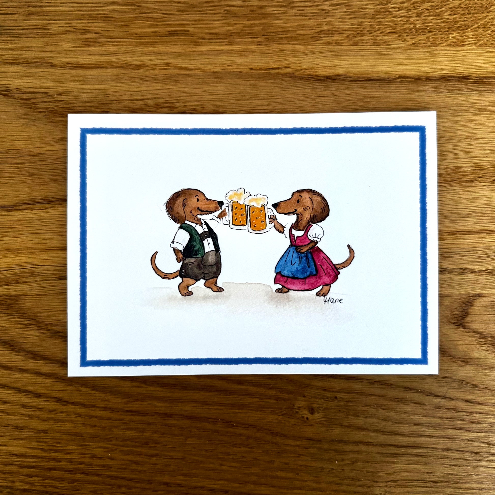 Diese Karte sprüht vor Lebensfreude: ein bisschen Tradition, ein bisschen Schaumkrone und ganz viel Herz. Ein fröhliches Wuff und Prost! für alle Gelegenheiten.