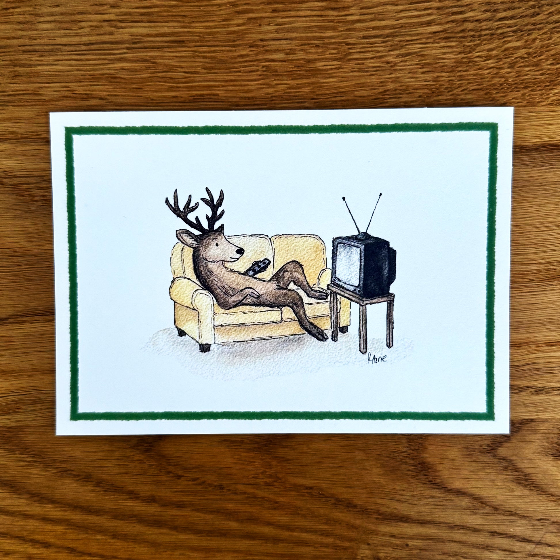 Ein Hirsch auf dem Sofa, die Fernbedienung locker in der Hand – bereit für das große Nichts. Und genau das ist der Plan.