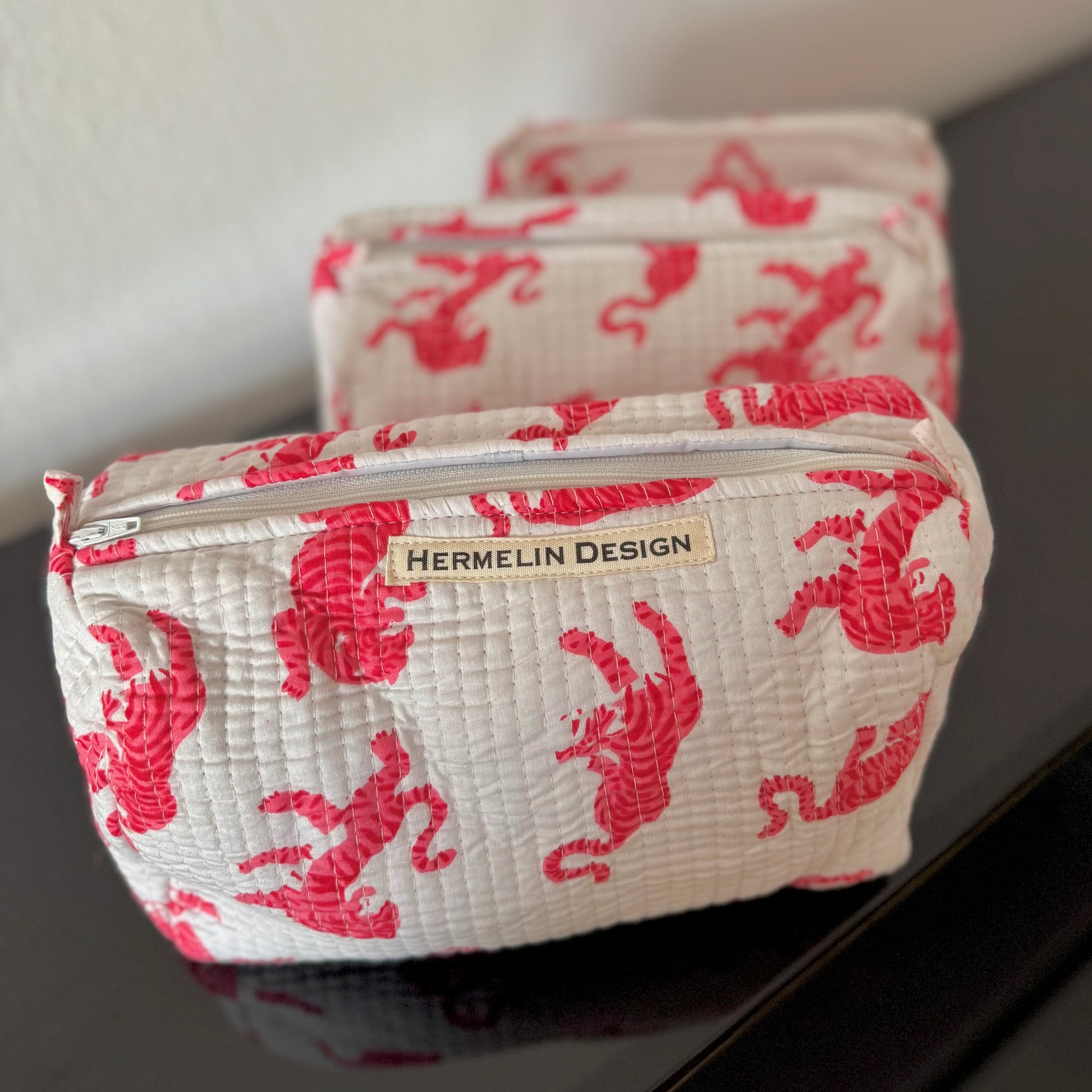 Hinweis: Unsere großen Kulturbeutel tragen das „Hermelin Design“-Logo auf der Vorderseite. Durch die handwerkliche Verarbeitung sitzt es nicht immer ganz mittig - dafür steckt umso mehr Liebe drin. Auch das Muster kann je nach Stoffzuschnitt leicht variieren - nicht alle Tiere sind auf jedem Beutel vollständig zu sehen. Jeder Kulturbeutel ist damit ein echtes Unikat.